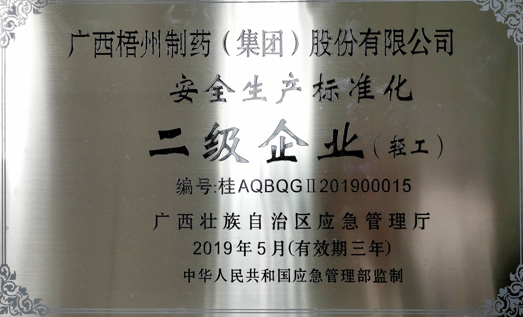 荣获安全生产标准化二级企业(轻工)称号