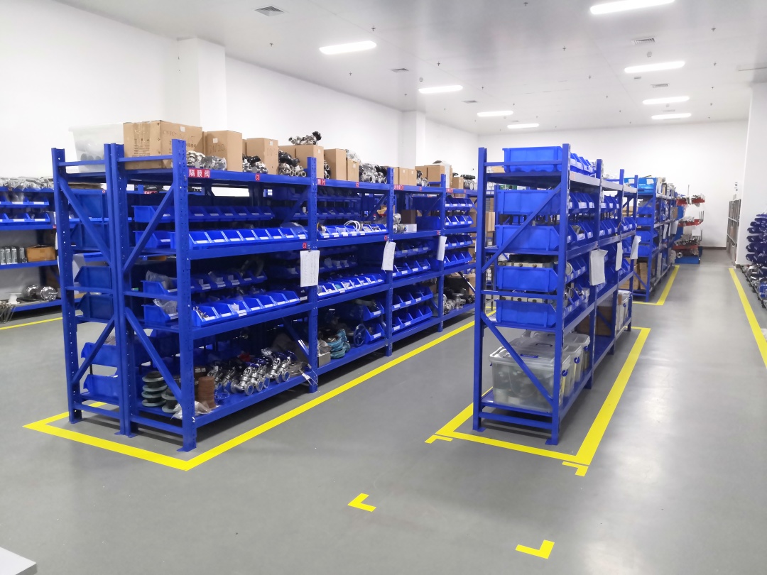 货架摆放从B到S按照常用件——不常用件——呆滞品的排列顺序摆放,物品领用人进门后能一目了然快速找到物品。