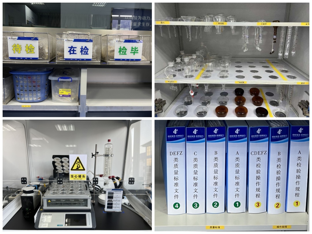 质量是企业的根本。在质量控制工作中,每个细微环节都需要认真细致、规范操作,才能保证结果精准无误。质量控制部通过改善实验室环境,保证检验操作正确开展。样品按待检、在检、检毕分颜色摆放,操作不易弄混。对文件、物品进行分区定置,使用定位胶带或分隔板进行分隔,便于快速、准确查找。在检验仪器旁定置图文并茂的操作规程,便于阅读,提高了检验人员操作的准确率。这一系列举措使得检验环境大大改善,提高了检验人员的效率与准确率。