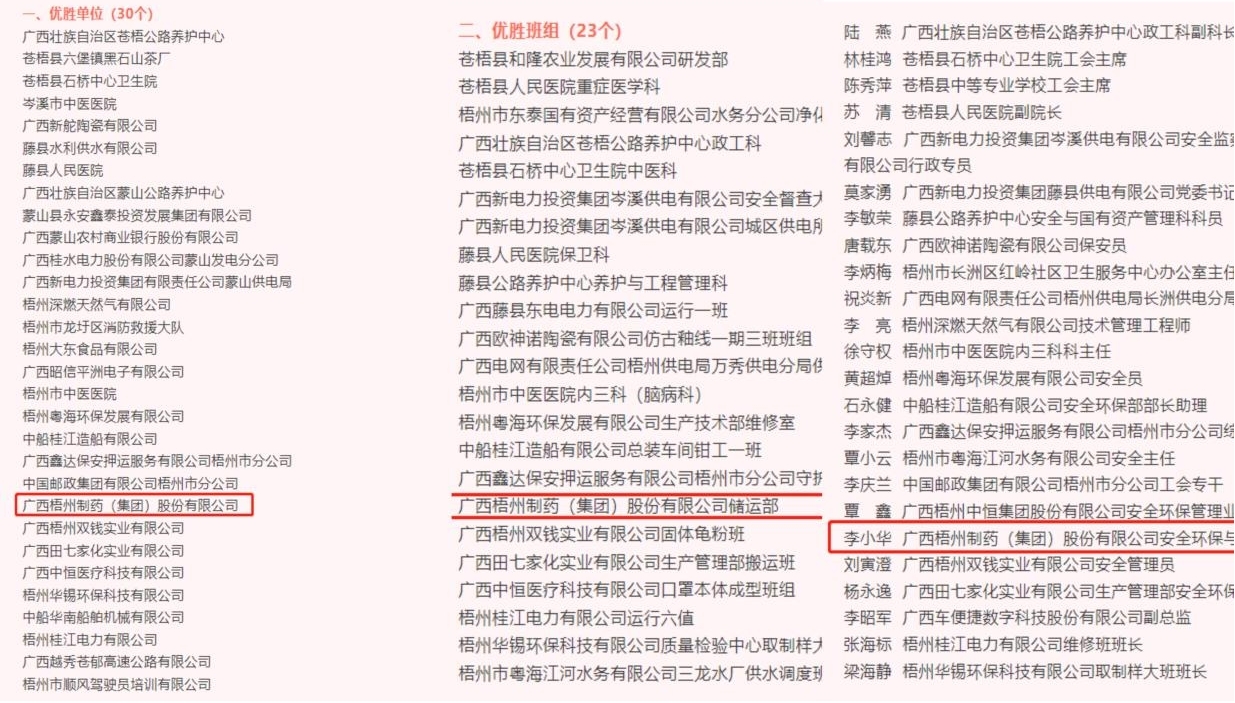 近日,梧州市“安康杯”竞赛组委会办公室通报2022年度梧州市“安康杯”竞赛活动先进集体和优秀个人,betway必威荣获先进集体荣誉称号,公司储运部荣获优胜班组,原料药车间安全环保与设备主管李小华荣获优秀个人称号。