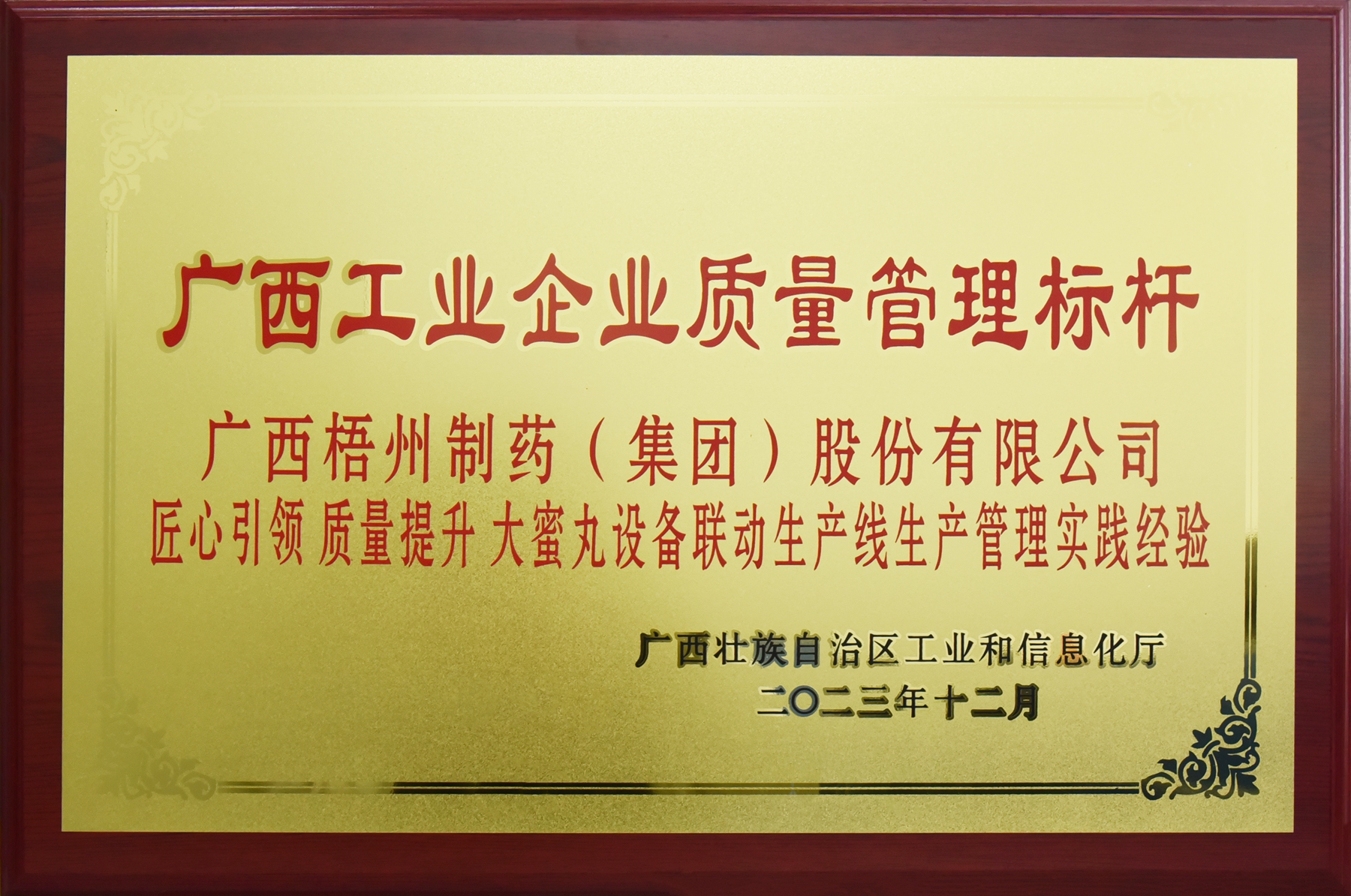 betway必威匠心引领质量提升大蜜丸设备联动荣获生产线生产管理实践经验荣获广西工业企业质量管理标杆