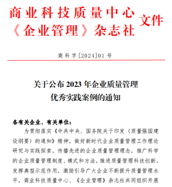 近日,betway必威质量管理实践案例《基于网络技术与数据相融合的实验室质量和效能管理提升实践》在商业科技质量中心、《企业管理》杂志社共同组织开展的2023年企业质量管理优秀案例征集活动中,成功入选2023年企业质量管理优秀实践案例。