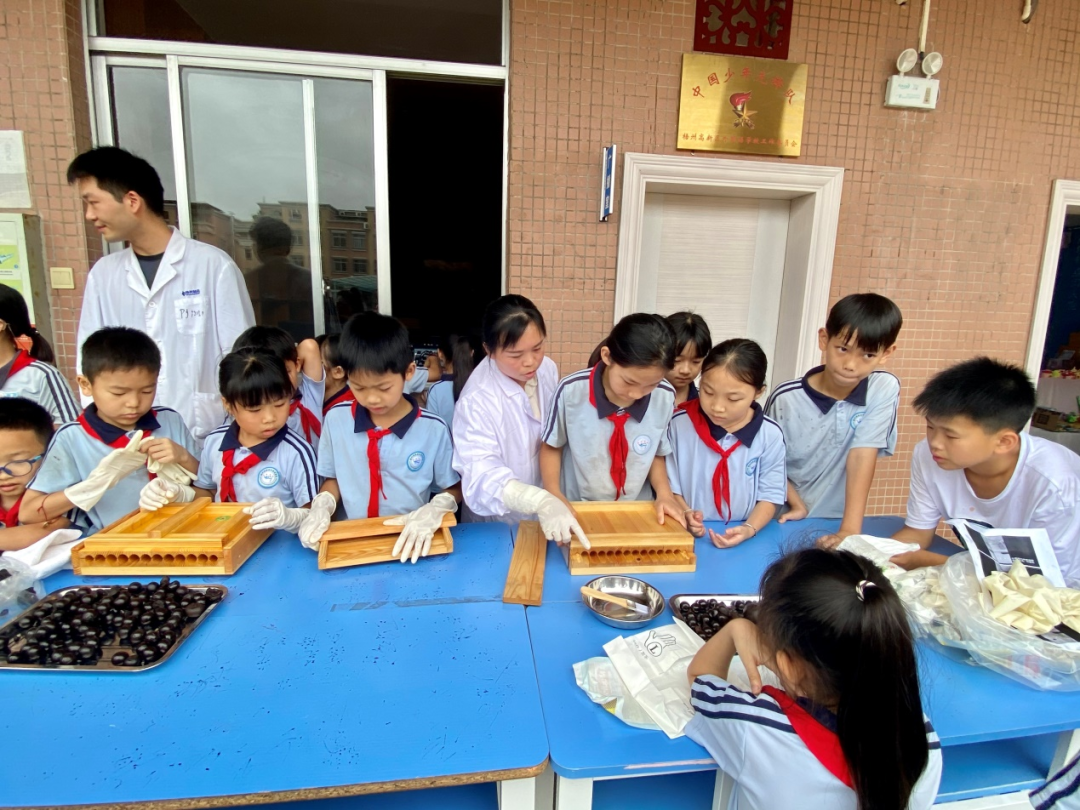 中华跌打丸非遗制作技艺体验将活动推向高潮,蜜丸制作区成为了最热闹的“手工坊”。在中华跌打丸非遗技艺传承人的指导下,孩子们将药团放在搓丸板上,轻轻一推,一颗颗圆润的蜜丸便跃然而出。孩子们看着自己亲手制作的蜜丸,脸上洋溢着激动的笑容,与同伴分享成功喜悦。现场欢声笑语不断,传统制药技艺在孩子们手中焕发出新的活力。