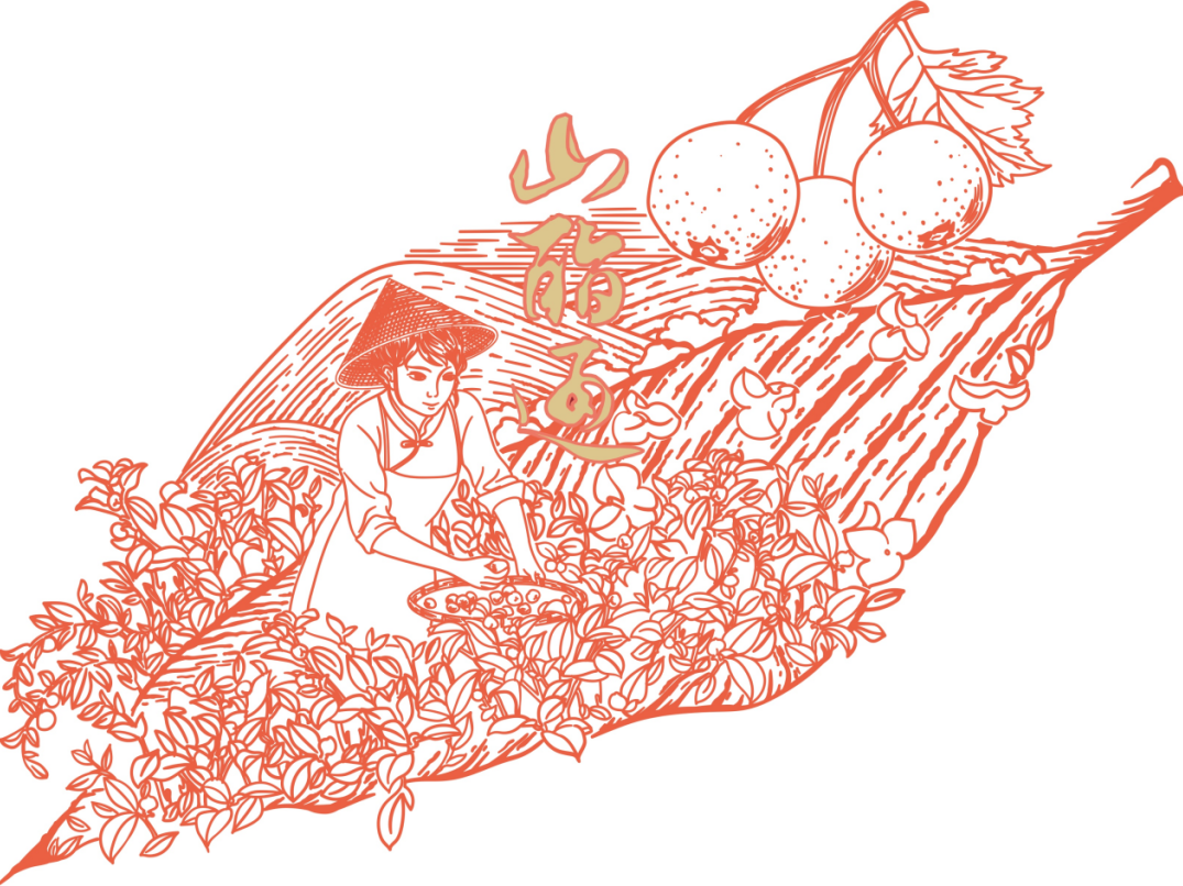 甘露凝香,一叶知秋,云山好物,百草凝珍。作品通过中国传统线描画,将公司新产品山酯通茶饮的产品特色凝聚于画作。构思来源于产品所使用的原料均取自秋天高山植物提取物的产品特性,将高山、茶园、果实和采摘劳作场景浓缩于一秋叶之中。图中远山层峦叠嶂,如一幅写意水墨徐徐展开,近景茶园苍翠,采茶女素手纤纤喜悦劳作,层次分明,虚实相生,疏密得当,精妙构图诠释了产品采撷山野醇厚,酝酿岁月回甘之特性。