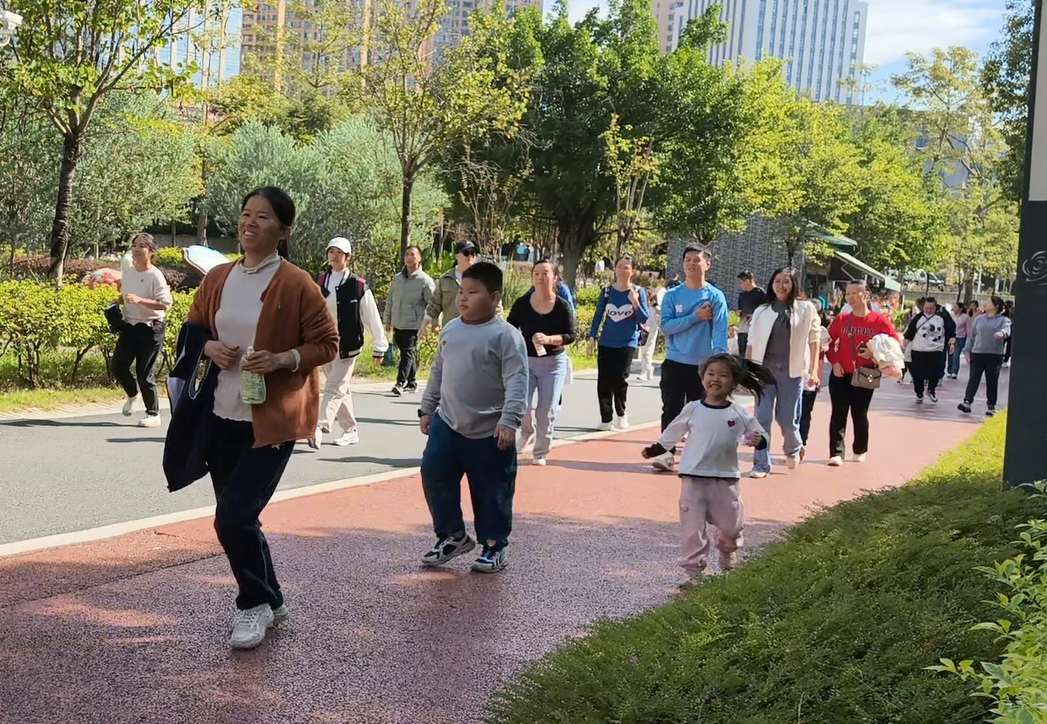 游戏环节结束后,工会组织开展了亲子环湖健走活动。50余组家庭携手出发,沿澄澈的玫瑰湖畔漫步前行。为保障活动安全有序,工会提前勘察路线,沿途设置3个补给站,志愿者贴心提供饮用水和小食品。家长与孩子们或缓步交谈,或驻足赏景,或拍照留念,将湖畔的美景与亲子的笑颜一一定格,欢声笑语萦绕在整个环湖路上。