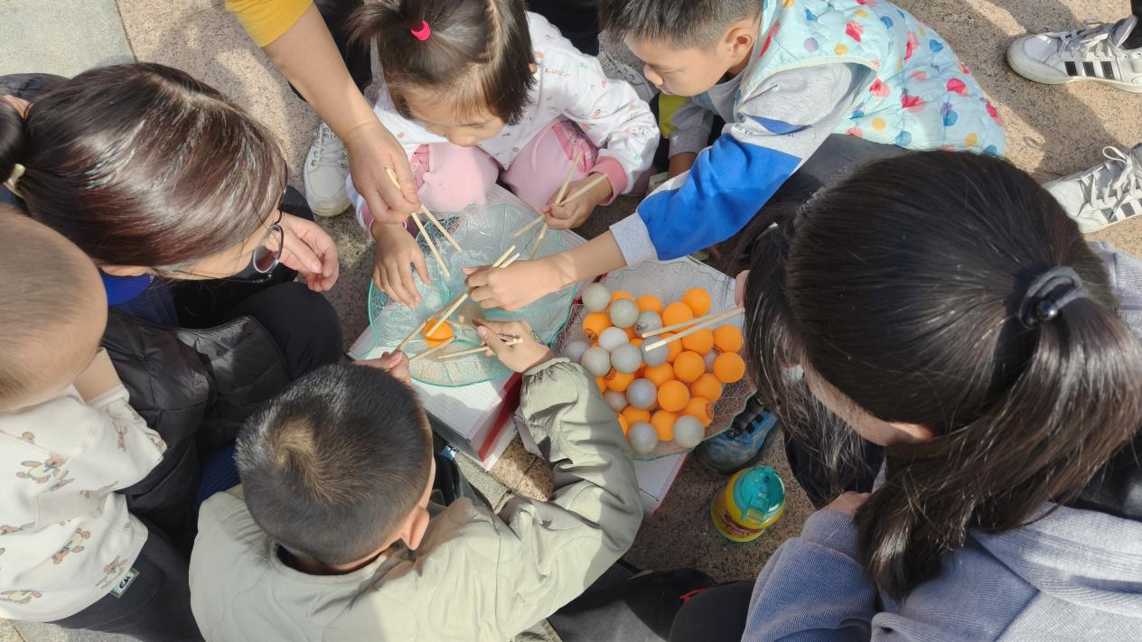 上午9时30分,活动正式拉开帷幕,一场场充满趣味与温情的亲子游戏轮番上演。“珠行万里”项目中,家长与孩子手持半圆槽拼接通道,小球滑落时共同默契重整,掌心相对间不仅传递着力量,更凝聚着亲情;壶中“箭”宝环节融入传统元素,家长们手把手带领孩子瞄准投掷,每一次成功入壶都引发全场欢呼;“筷子夹乒乓球”项目磨练耐心技巧,孩子们模仿家长动作小心翼翼夹球,有的家庭还创意发明“接力夹球”玩法,现场加油声、欢呼声交织成群。