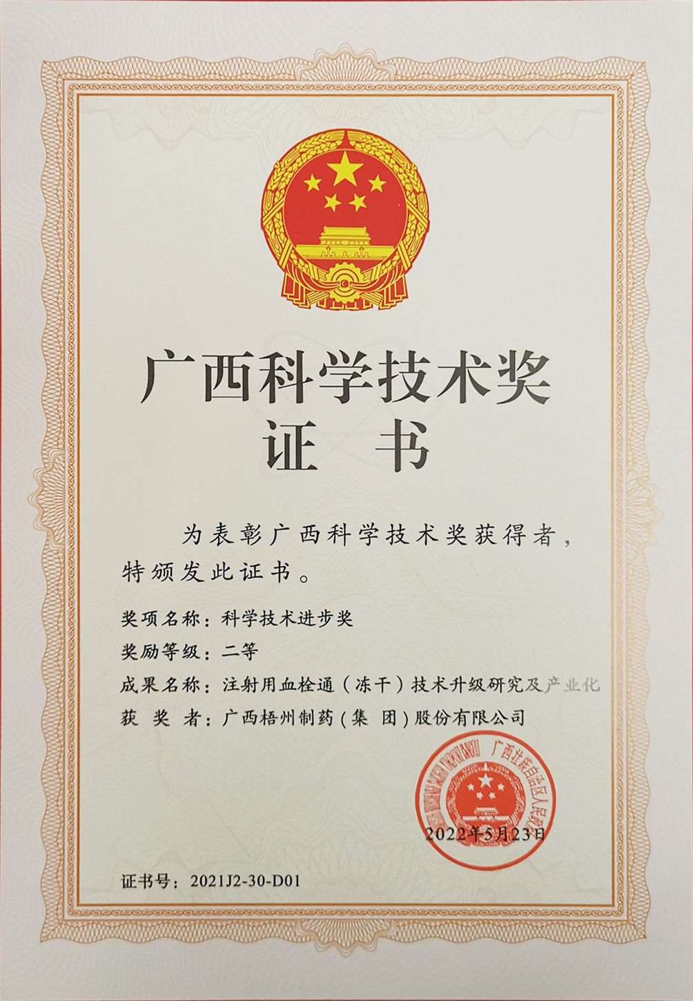荣获2022年广西科学技术进步奖